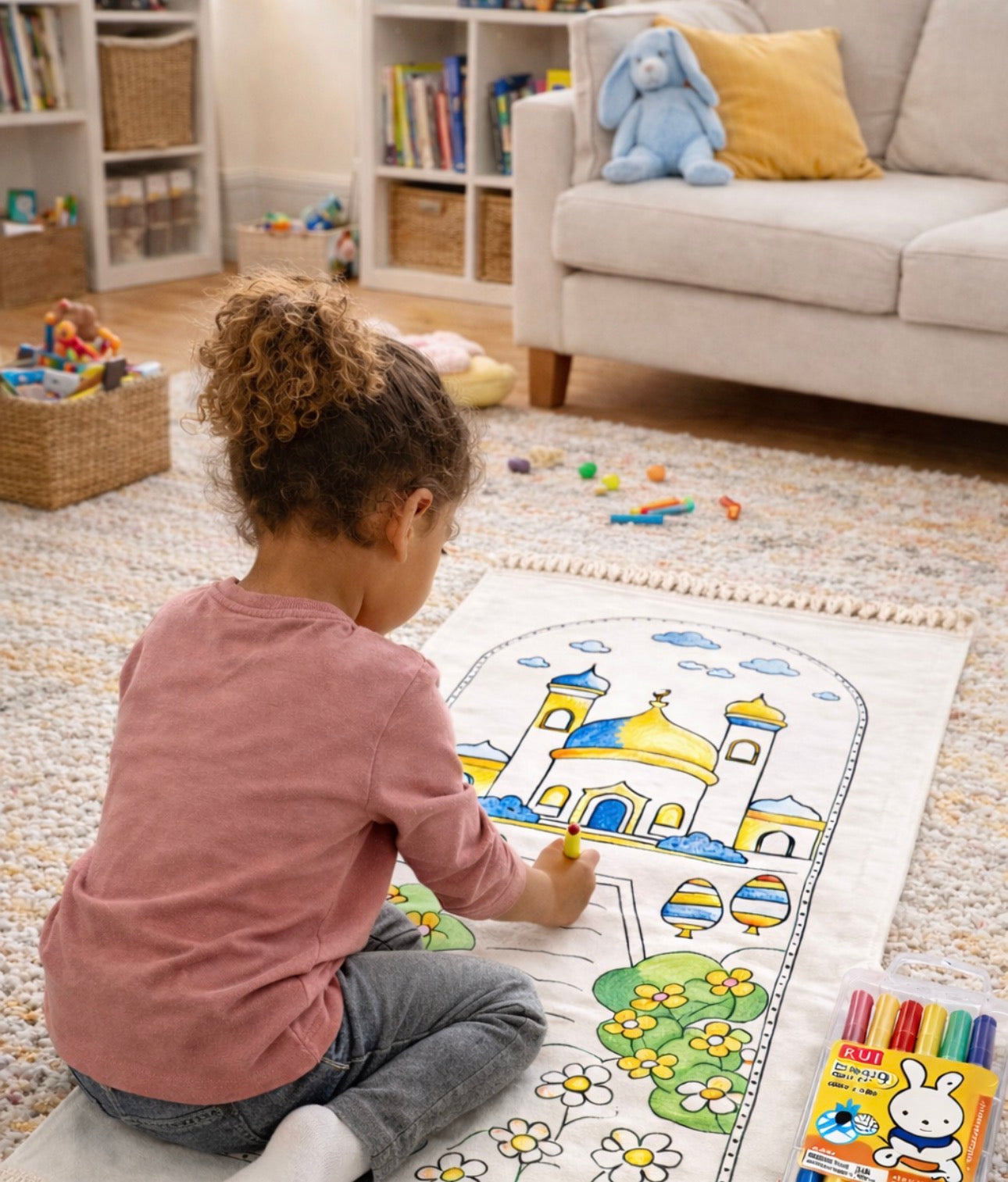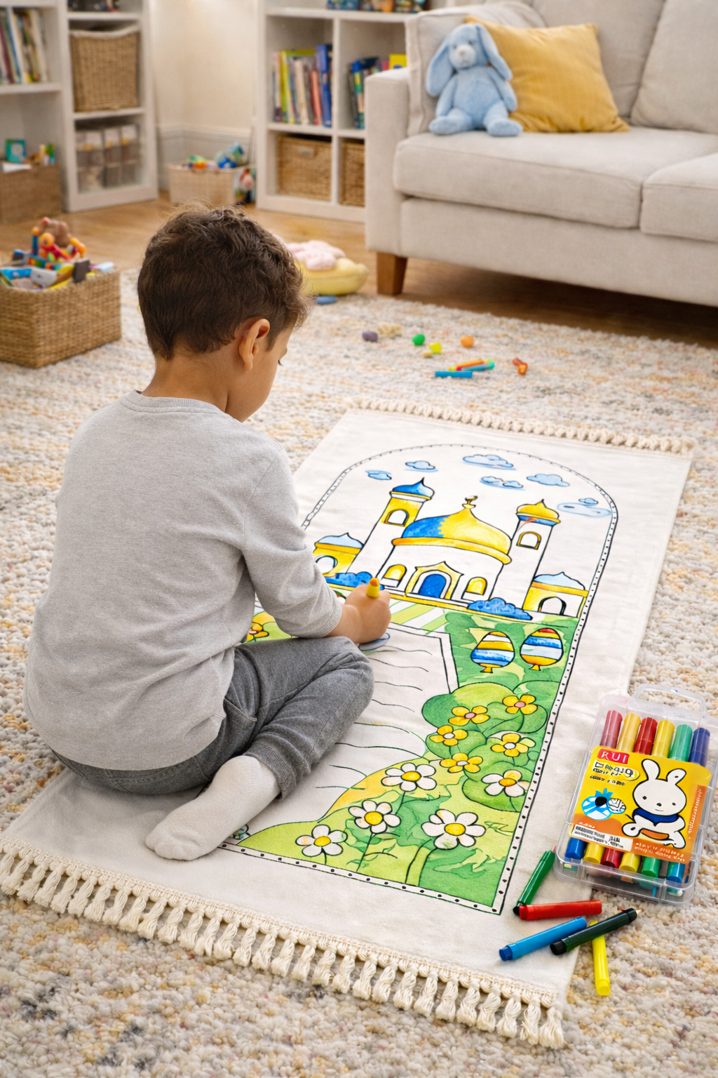 Notre tapis de prière à colorier a été conçu pour accompagner les enfants dans l'apprentissage de la prière, tout en stimulant leur imagination.